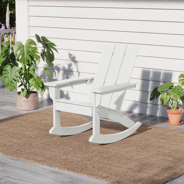 Shoreside White Plastic Modern Adirondack Outdoor Rocking Chair