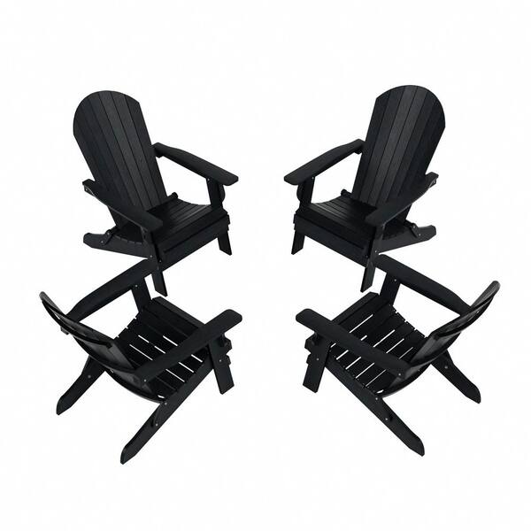 Vineyard Black Outdoor Plastic Patio Folding Adirondack Chair (Set of 4)