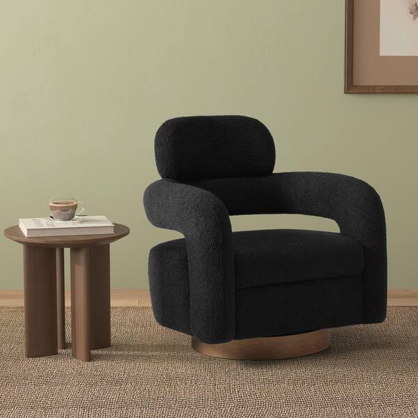 Bayville Modern 29 in. Wide Sherpa Fabric Barrel Accent Chair with 360° Swivel in Black
