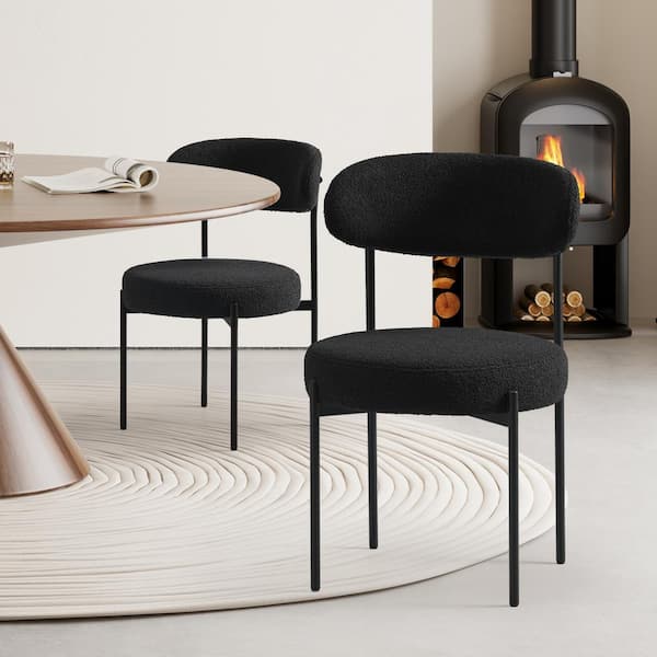 Bayville Modern Sherpa Upholstered Metal Frame Side Dining Chair Set of 2 in Black
