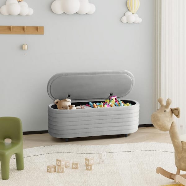 Farrah 42 in. Wide Oval Velvet Upholstered Entryway Flip Top Storage Bedroom Accent Bench in Gray