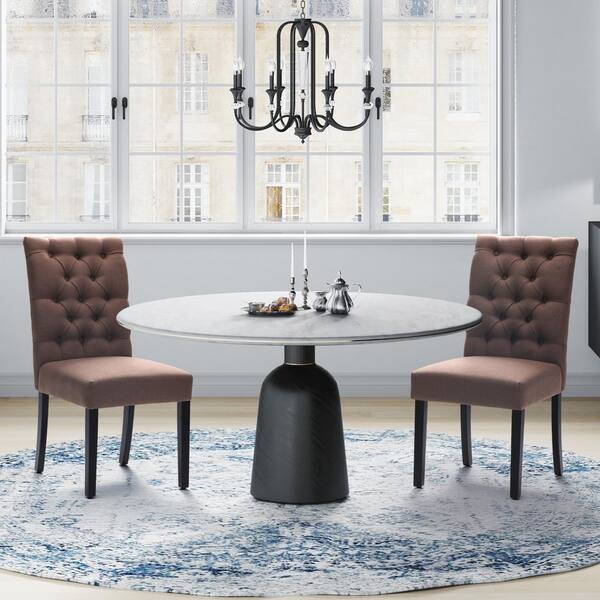NINA Button Tufted Back Brown Linen Upholstered Dining Side Chair (Set of 2)