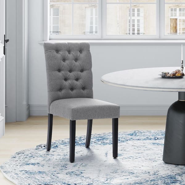 NINA Button Tufted Back Gray Linen Upholstered Dining Side Chair
