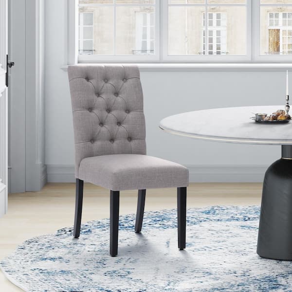 NINA Button Tufted Back Light Gray Upholstered Dining Side Chair