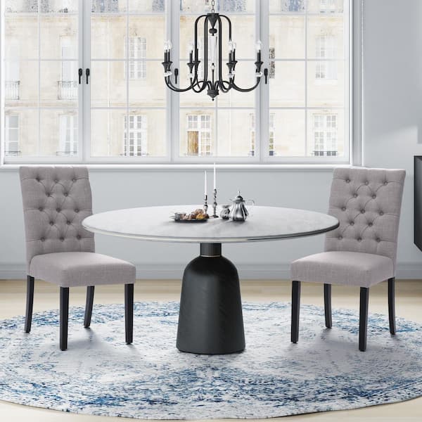 NINA Button Tufted Back Light Gray Upholstered Dining Side Chair (Set of 2)