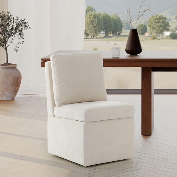 Stansberry Chenille Cream Fabric Upholstered Armless Dining Chair with Lift-Seat Storage and Caster Wheels