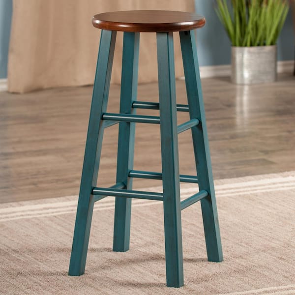 Ivy 29 in. Rustic Teal and Walnut Wood Frame Bar Stool