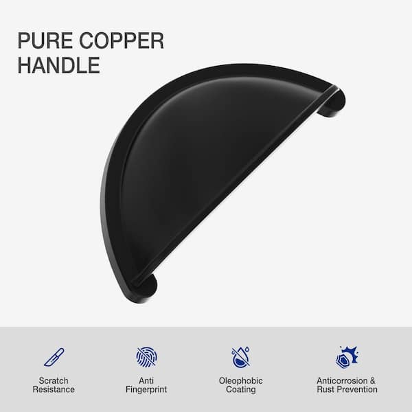 3.7 in. (76mm) Matte Black Door Handles and Pulls Semicircle Pure Copper Cabinet Drawer Cup Pulls (2-Pack)