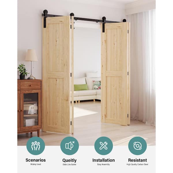 6.6 ft. /80 in. I Shape Frosted Black Bi-Folding Sliding Barn Door Hardware Track Kit for 4-Doors
