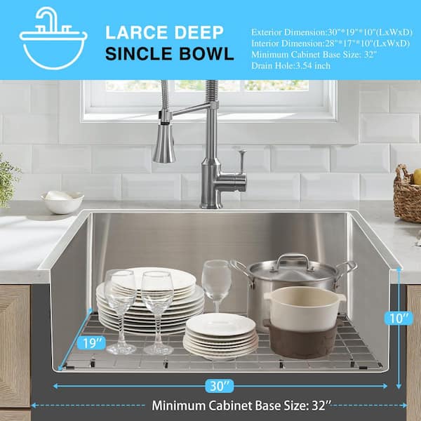 30 in. Drop-In/Undermount Single Bowl 16-Gauge Brushed 304-Stainless Steel Kitchen Sink with Accessories