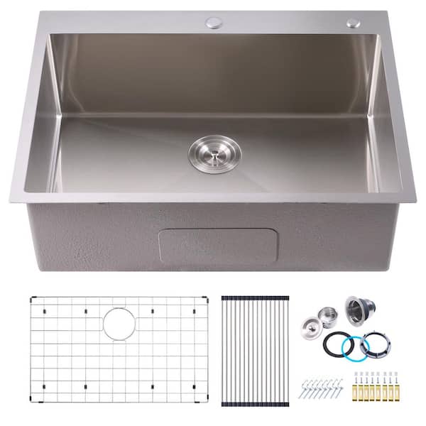 30 in. Drop-In/Undermount Single Bowl 16 Gauge Brushed 304 Stainless Steel Kitchen Sink with Accessories