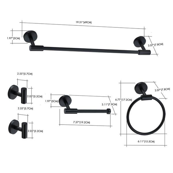 5-Piece Bath Hardware Set 19 in. with Mounting Hardware in Matte Black