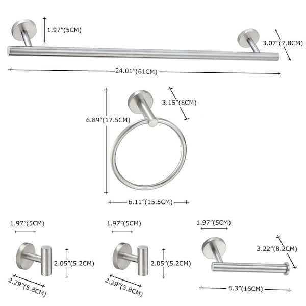 5-Piece Bath Hardware Set 24 in. with Mounting Hardware in Brushed Nickel