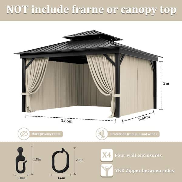 12 ft. x 12 ft. Universal Outdoor Privacy Curtains, Gazebo Curtain Replacement with Zipper Cream (4-Side Curtain Only)