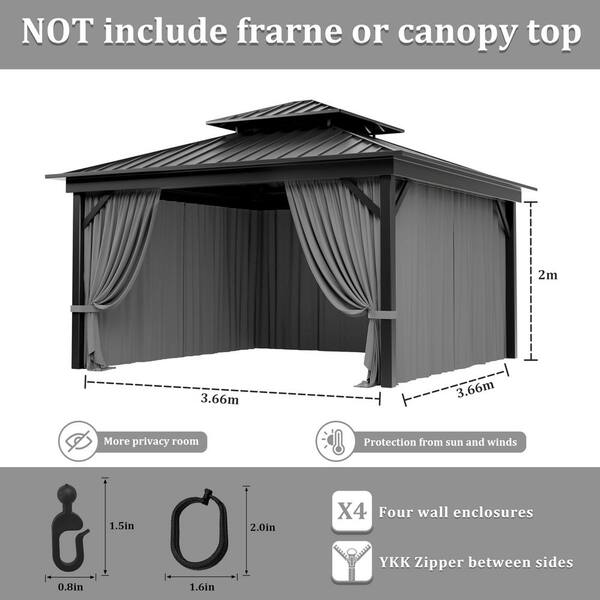 12 ft. x 12 ft. Universal Outdoor Privacy Curtains, Gazebo Curtain Replacement with Zipper Grey (4-Side Curtain Only)