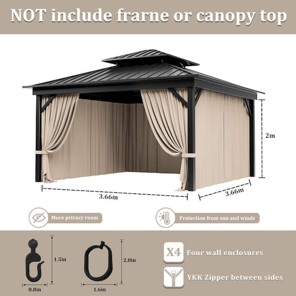 12 ft. x 12 ft. Universal Outdoor Privacy Curtains, Gazebo Curtain Replacement with Zipper Khaki (4-Side Curtain Only)
