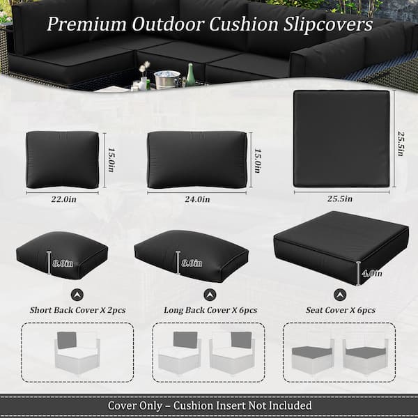 14-Pieces Patio Cushion Covers Replacement with Zipper for Sectional Sofa Set, Slipcovers for Outdoor Cushions Black