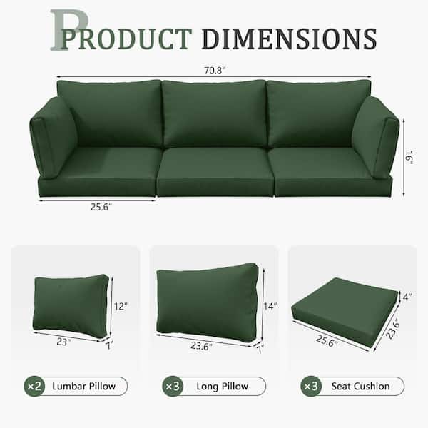 25.6 in. x 23.6 in. x 4 in. (8-Piece) Deep Seating Outdoor Lounge Chair Sofa Cushion with Lumber Pillow Cushion Green
