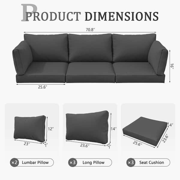 25.6 in. x 23.6 in. x 4 in. (8-Piece) Deep Seating Outdoor Lounge Chair Sofa Cushion with Lumber Pillow Cushion Grey