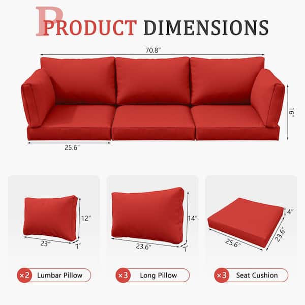 25.6 in. x 23.6 in. x 4 in. (8-Piece) Deep Seating Outdoor Lounge Chair Sofa Cushion with Lumber Pillow Cushion Red