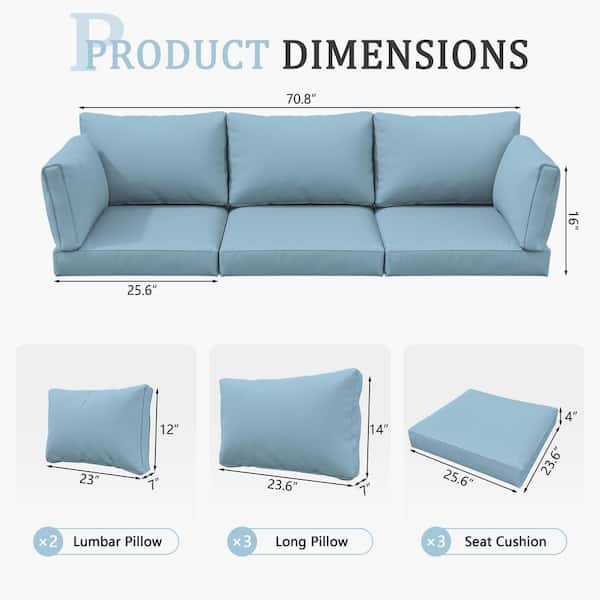 25.6 in. x 23.6 in. x 4 in. (8-Piece) Deep Seating Outdoor Lounge Chair Sofa Cushion with Lumber Pillow Cushion Sky Blue