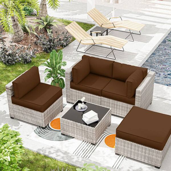 25.6 in. x 25.6 in. x 4 in. (9-Piece) Deep Seating Outdoor Sectional Replacement Cushion Chocolate