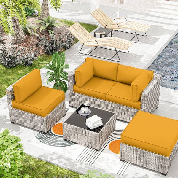 25.6 in. x 25.6 in. x 4 in. (9-Piece) Deep Seating Outdoor Sectional Replacement Cushion Yellow