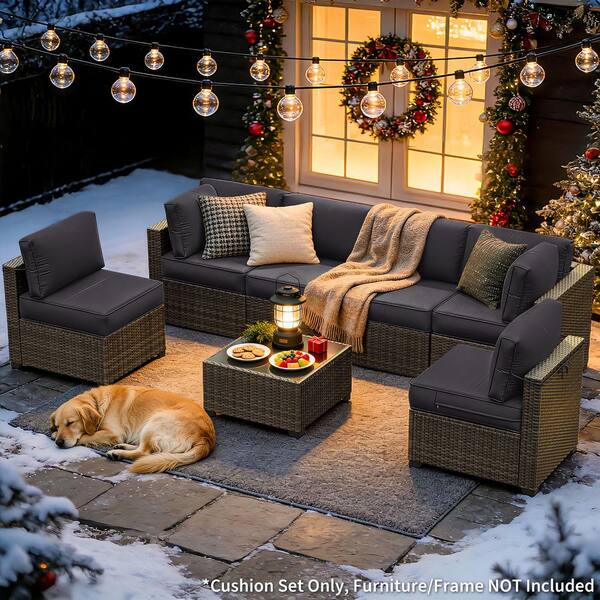 26 in. x 26 in. x 5 in. (14-Piece) Deep Seating Outdoor Lounge Chair Sectional Cushion Grey