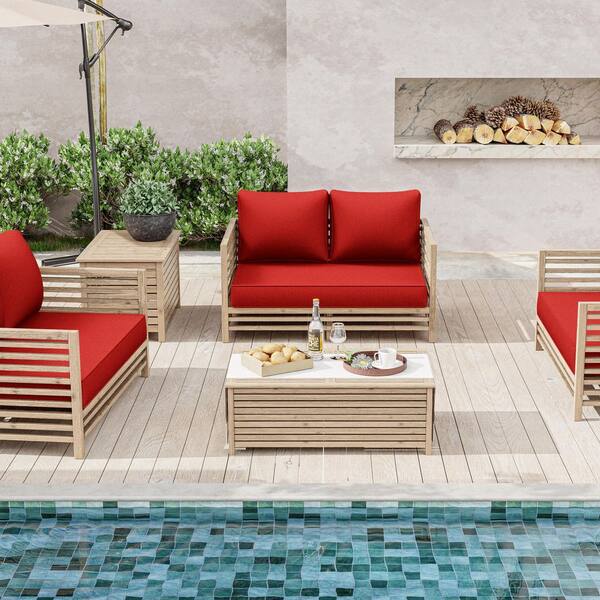 46 in. x 26 in. Outdoor Patio Replacement Loveseat Cushion Set with Backrest Red
