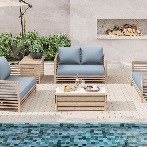 46 in. x 26 in. Outdoor Patio Replacement Loveseat Cushion Set with Backrest Sky