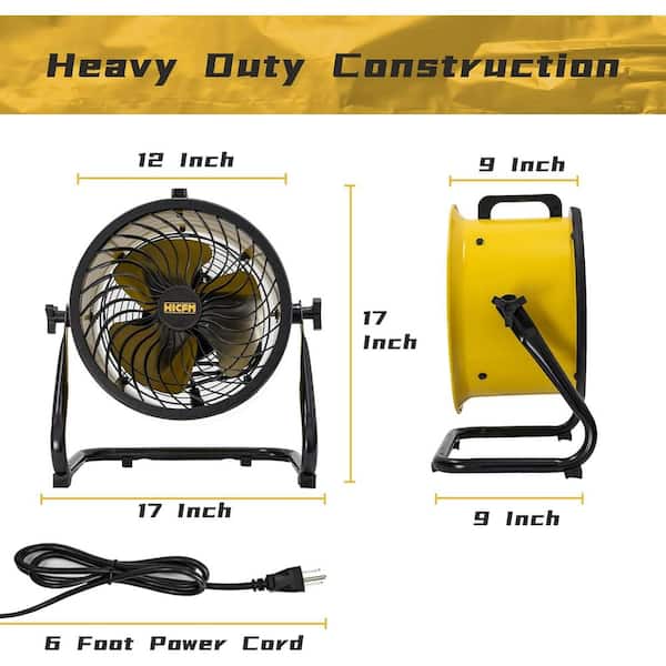 10 in. 3 Speeds High Velocity Drum Air Circulator Floor Fan in Yellow with 1/12 HP Powerful Motor, 1200 CFM