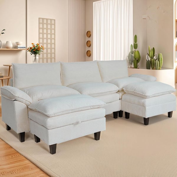 117.7 in. Pillows Armrests 5-piece U Shaped Corduroy DIY Combination Modular Sectional Sofa in. Beige with 2 Ottomans