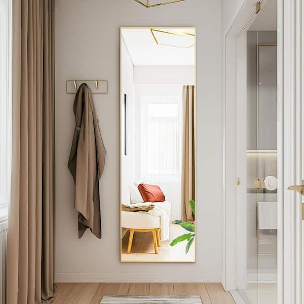 21 in. W x 64 in. H Aluminum Alloy Frame Rectangle Full Length Gold Mirror with Shatter-Proof Glass, Floor Standing
