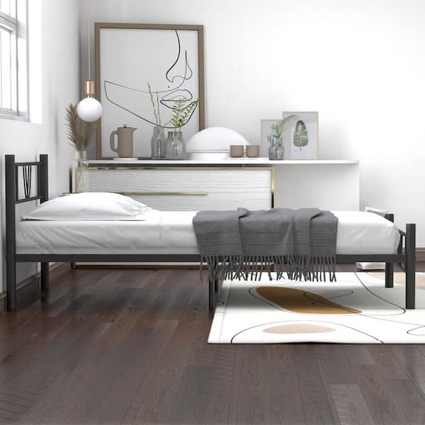 Black Metal Frame Twin Platform Bed with Headboard and Footboard, No Box Spring Needed