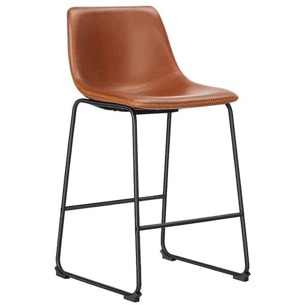 Brown Faux Leather 26 in. Counter Height Bar Stools Set of 2 with Back and Metal Leg for Kitchen lsland