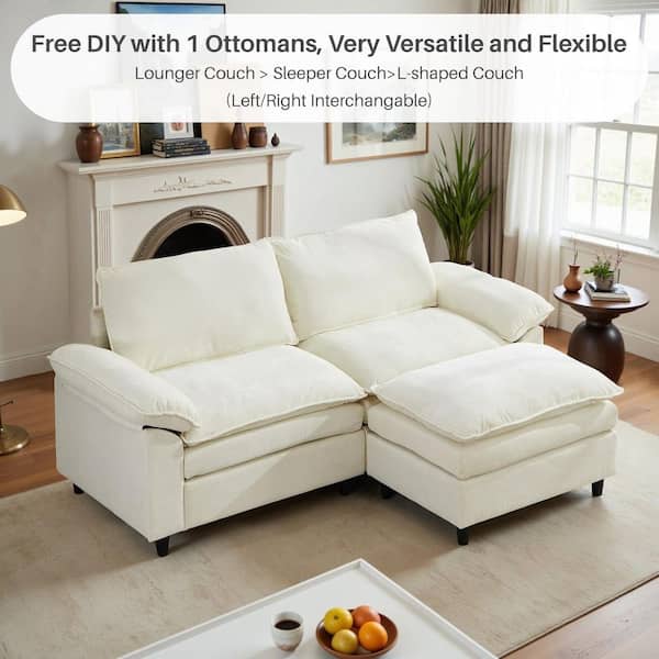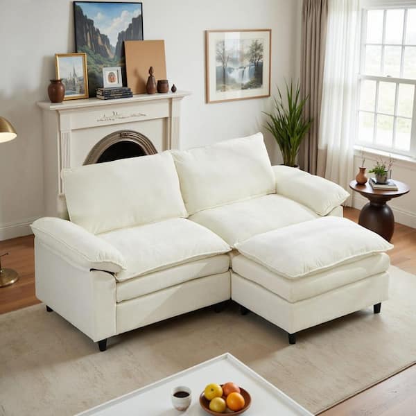 Chic 80 in. Beige Chenille 2-Seater Loveseat Sofa Couch with Soft Pillowed Armrest and Ottoman for Living Room