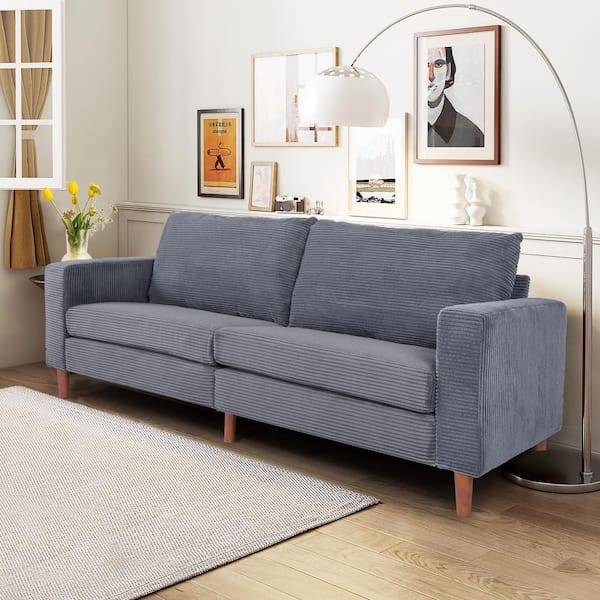 Chic 83 in. Corduroy 2-Seater Removable Cushion Loveseat with Square Arm in Gray