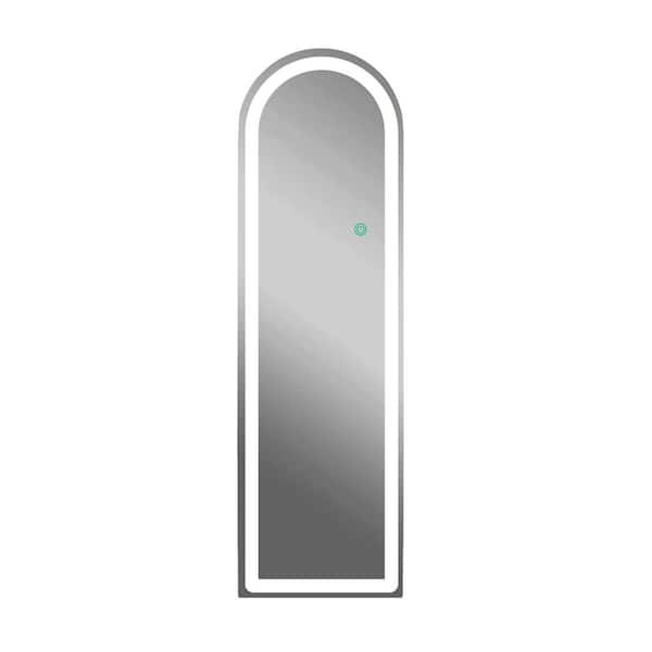 Elegant Silver 16 in. W x 60 in. H Arched Aluminum Alloy Frame Floor Mirror with 3-Color Dimming LED Light