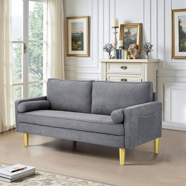 Exquisite 65 in. Gray Polyester 2-Seater Loveseat with Side Pockets and Round Pillows