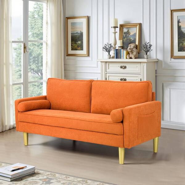 Exquisite 65 in. Orange Polyester 2-Seater Loveseat with Side Pockets and Round Pillows