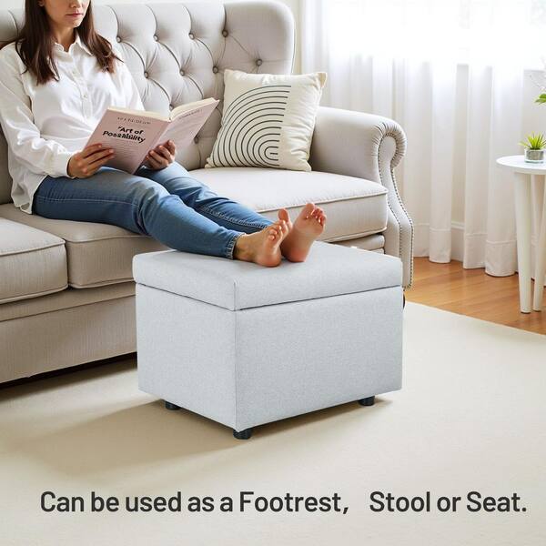Light Gray Fabric Rectangle Accent Medium Ottoman Footstool with Hide Storage and Flip Top for Living Room Bedroom