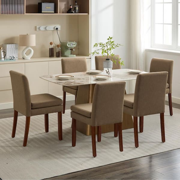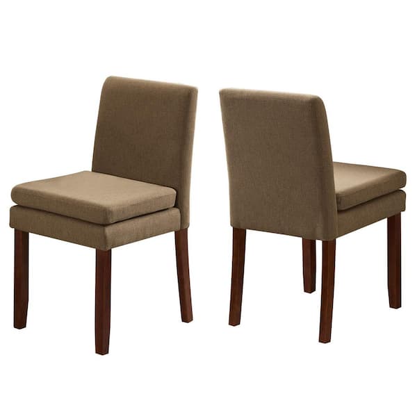 Modern Brown Linen Kitchen Dining Chair Set of 2 with Thick Padded Cushioned Seat and Wood Legs