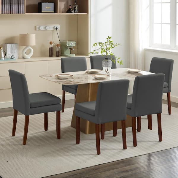Modern Gray Linen Kitchen Dining Chair Set of 2 with Thick Padded Cushioned Seat and Wood Legs