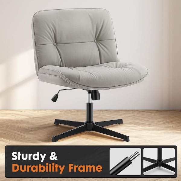 PU Leather Tilt Wide Seat Ergonomic Task Chair in Gray with Armless, Criss Cross Legged and No Wheels