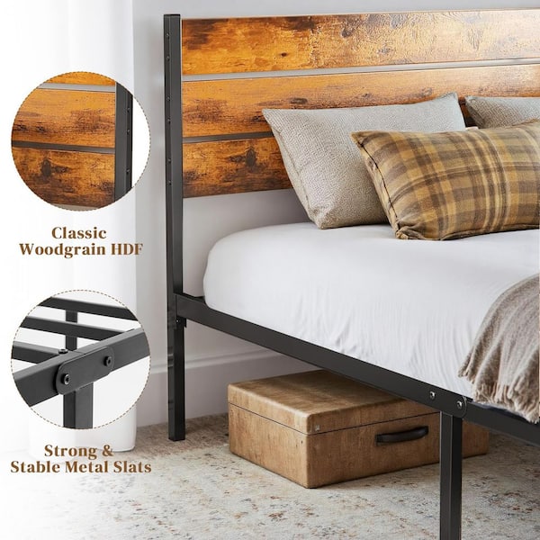 Rust Brown Wood Frame Queen Size Platform Bed Frame with Headboard and Footboard, 700lbs Support