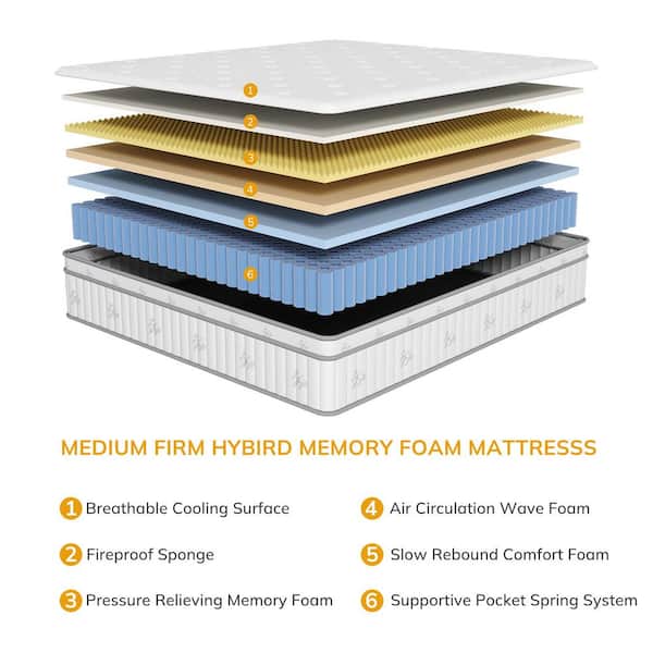 Twin Medium Firm Cool Gel Memory Foam Hybrid Mattress 10 in. Bed-in-a-Box Mattress with Pocketed Coils