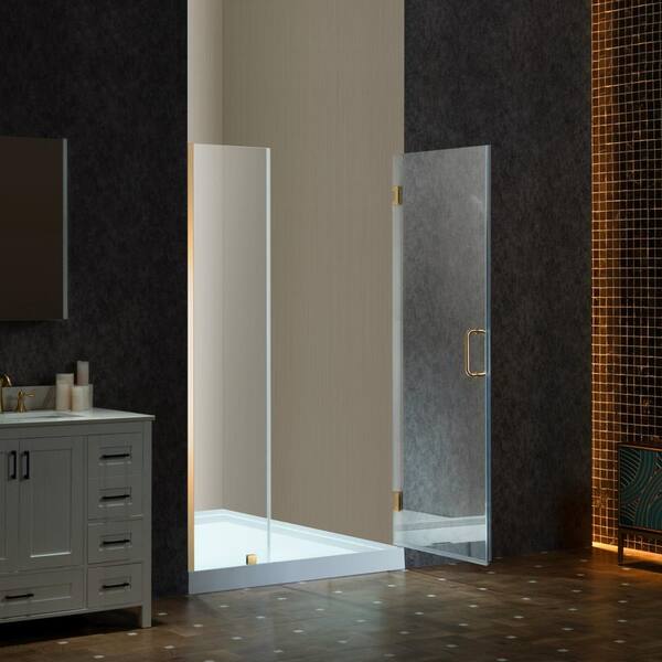42 in. W x 76 in. H Pivot Frameless Shower Door in Brushed Gold with 3/8 in. (10 mm) Clear Glass
