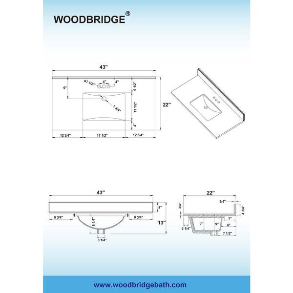 43in. W X 22in. D Engineered Stone Vanity Top in Fish Belly with Single White Sink