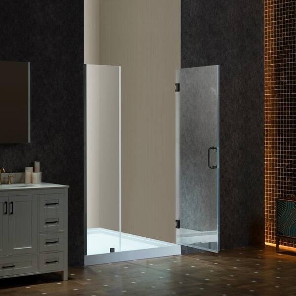 46 in. W x 76 in. H Pivot Frameless Shower Door in Matte Black with 3/8 in. (10 mm) Clear Glass