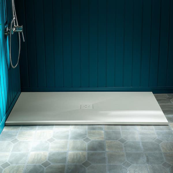 47.75 in. L x 32 in. W Alcove Shower Pan Base with Center Drain in Beige